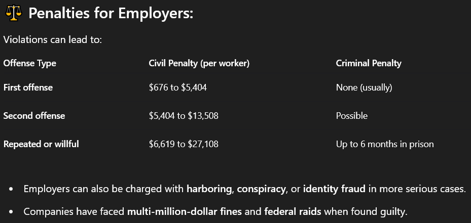 Employers cannot knowingly hire or continue to employ someone who isn’t authorized to work in the U.S.